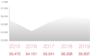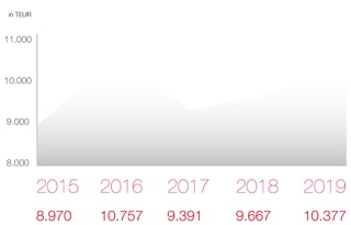 Die Personalkosten stellen den größten Kostenanteil dar. Ausschlaggebend für die starke Zunahme des Personalaufwands in 2016 sind eine tarifliche Entgelterhöhung sowie die Bildung einer Rückstellung für Pensionsverpflichtungen (T€ 845). Außerdem ist im Berichtsjahr 2019 erstmalig ein Finanzierungsbeitrag von T€184 für die Katholische Zusatzversorgungskasse (KZVK) angefallen.