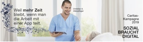 Digitalisierung verändert unser Zusammenleben und bietet viele neue Möglichkeiten – gerade im Sozialen. Die Caritas-Kampagne 2019 ruft dazu auf, den digitalen Wandel mitzugestalten, und fordert die Politik auf, den Fokus bei der Digitalisierung nicht nur auf Prozesse in Wirtschaft und Industrie zu richten: Sozial braucht digital! Mehr dazu hier.