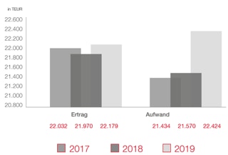 Die Personalkosten stellen den größten Kostenanteil dar. Ausschlaggebend für die starke Zunahme des Personalaufwands in 2016 sind eine tarifliche Entgelterhöhung sowie die Bildung einer Rückstellung für Pensionsverpflichtungen (T€ 845). Außerdem ist im Berichtsjahr 2019 erstmalig ein Finanzierungsbeitrag von T€184 für die Katholische Zusatzversorgungskasse (KZVK) angefallen.